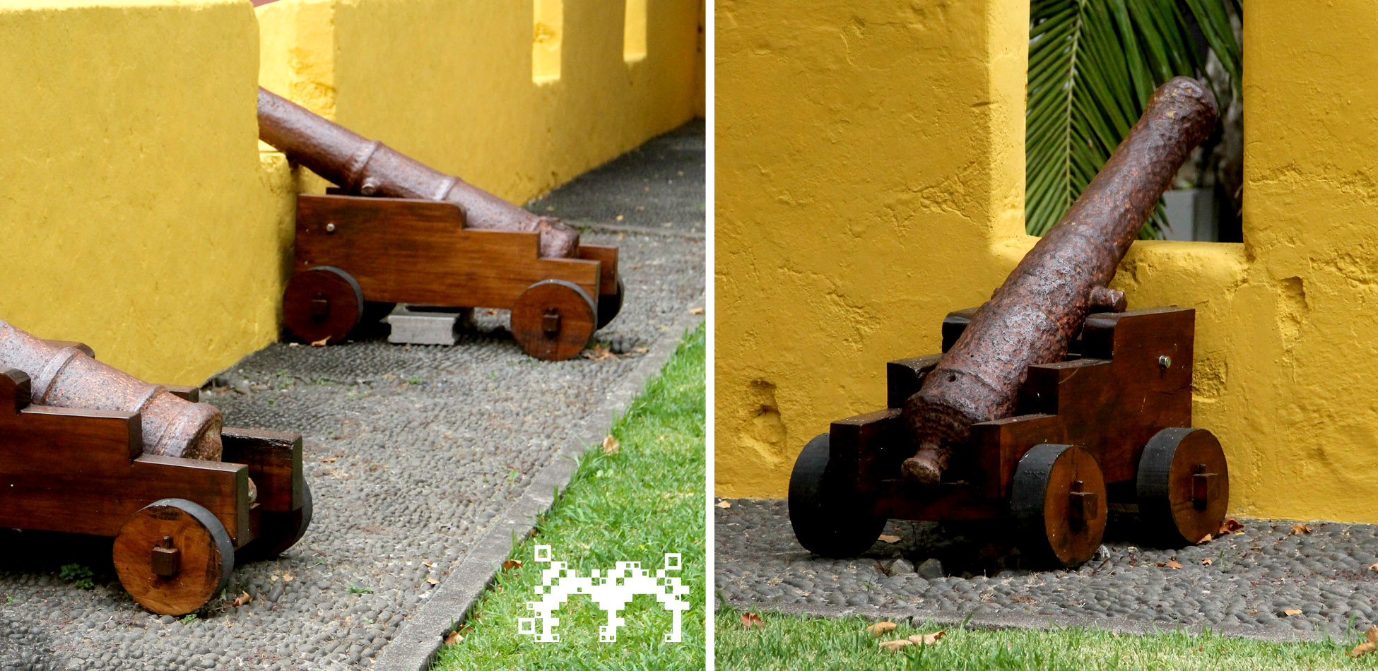 The esplanade of the fort is partially landscaped and paved with rolled pebble and decorated with iron cannons. This iron cannons come from ships that passed through the island and given their great use, they have no use.