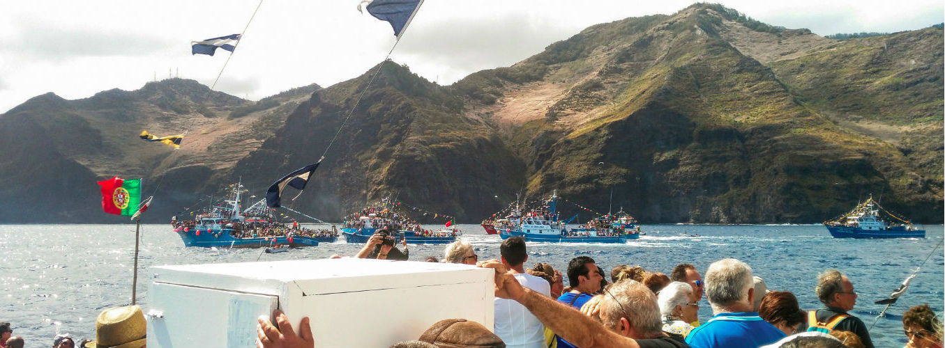 This feast attracts people from all over the Island, who year after year accompany the transport of Nossa Senhora da Piedade to Caniçal. The image is taken from the small chapel to one of the beautifully adorned boats that set sail towards the village, eventually returning back to her place in the chapel, making this procession truly unique.